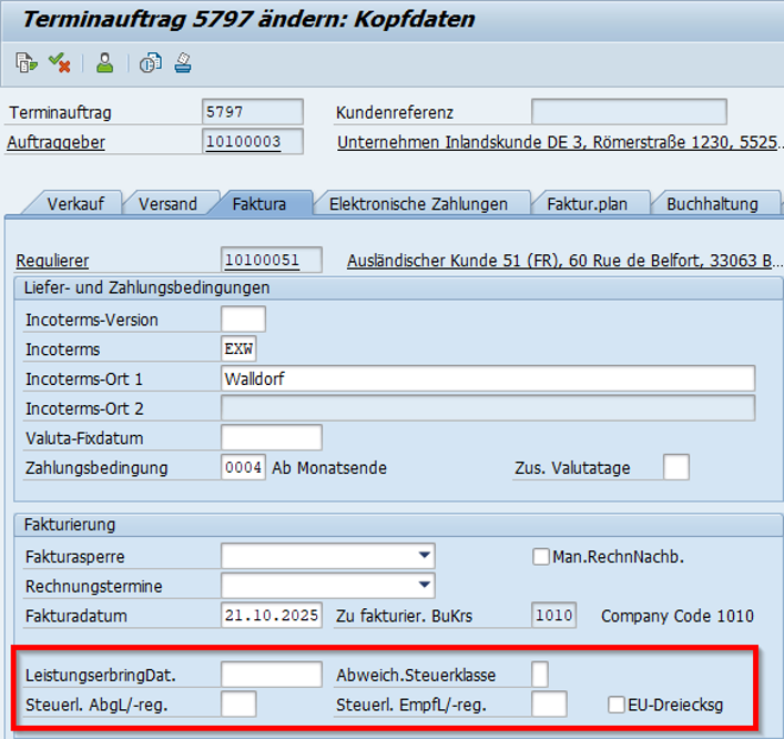 Abbildung 1: Manuelle Übersteuerung umsatzsteuerlicher Parameter im Auftragskopf.