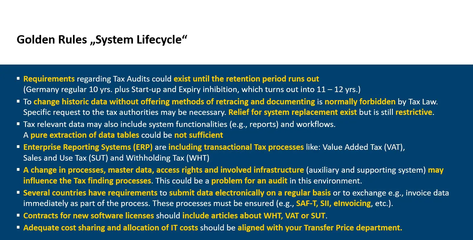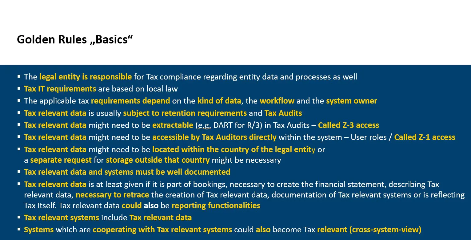 Die GoBD sind die Interpretation der Finanzverwaltung die deutsche Steuerpflichtige trifft. Unternehmen sind jedoch international tätig und müssen zahlreiche Standards in Deutschland und weltweit erfüllen.